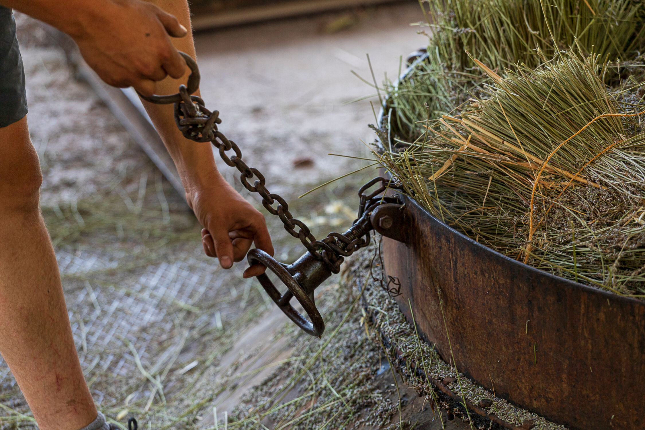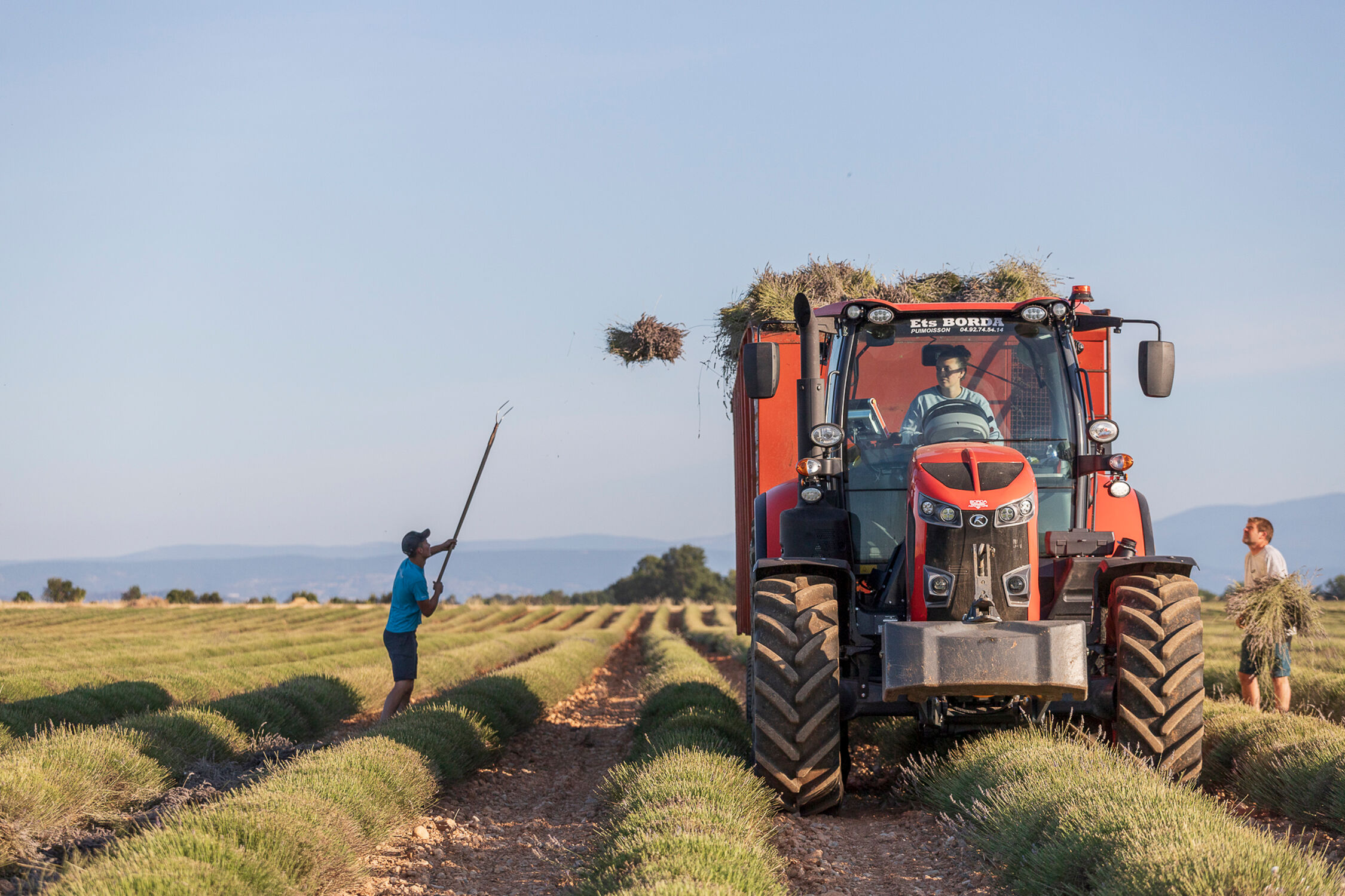 Nous réalisons toutes les étapes, de la plantation des boutures à la distillation. Après la coupe, la lavande est séchée directement dans les champs avant de passer dans notre alambic à vapeur. Nous utilisons comme combustible la paille de lavande déjà distillée, afin de préserver une méthode ancestrale respectueuse de l’environnement.